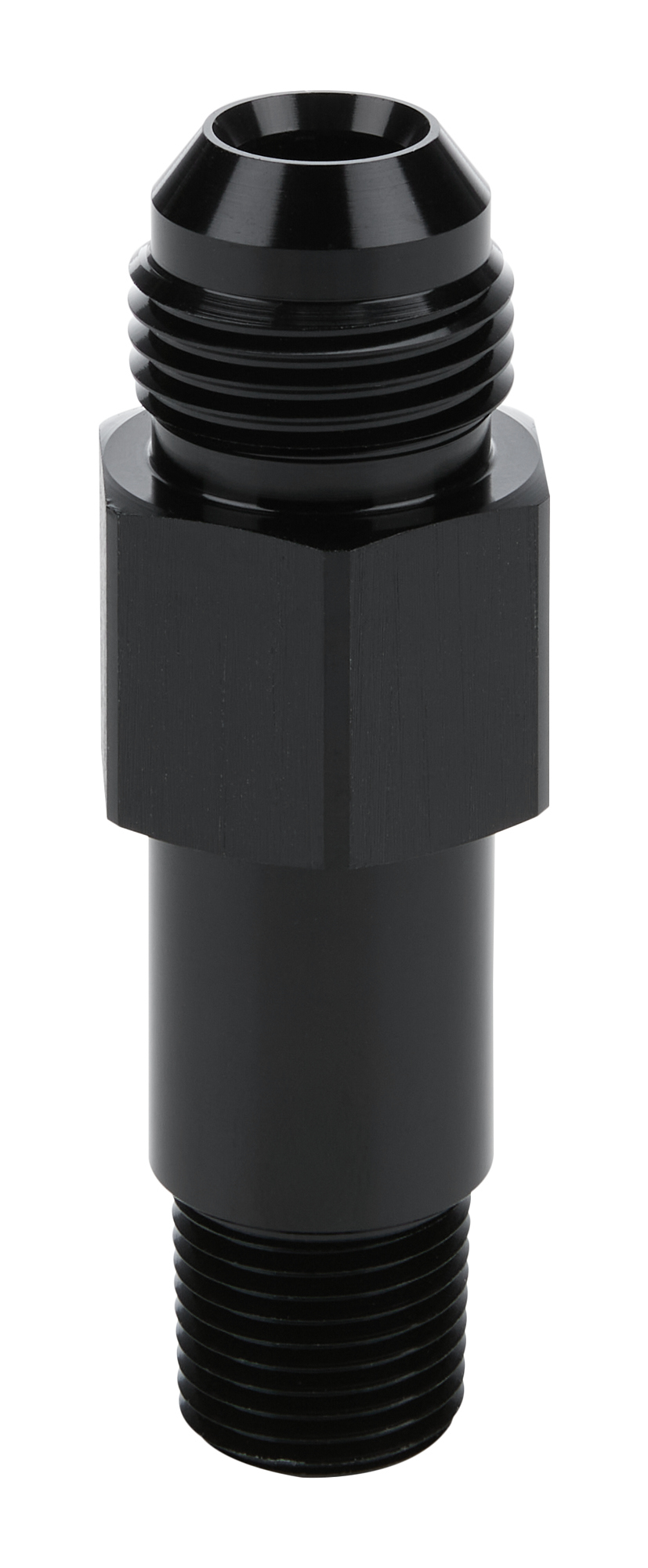 Product Description Extended Oil Inlet - Straight - 10 AN Male to 3/8 in NPT Male - 3 in Long - Aluminum - Black Anodized - Each