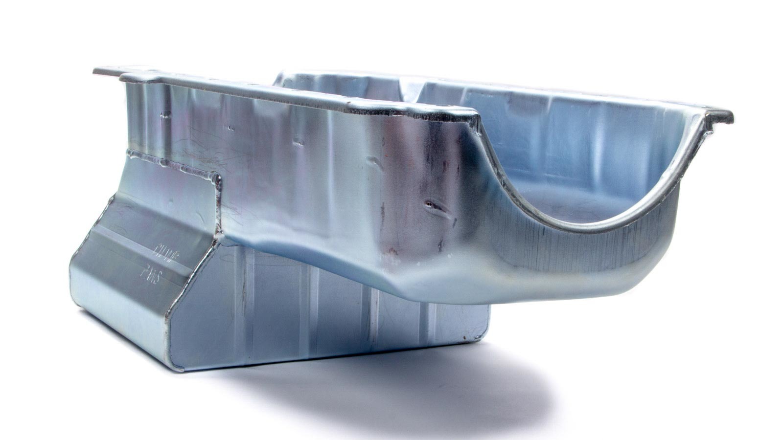 Product Description Engine Oil Pan - Street / Strip - Rear Sump - 8 qt - 8 in Deep - T Style Sump - Steel - Zinc Plated - 2-Piece Seal - Small Block Chevy - Each