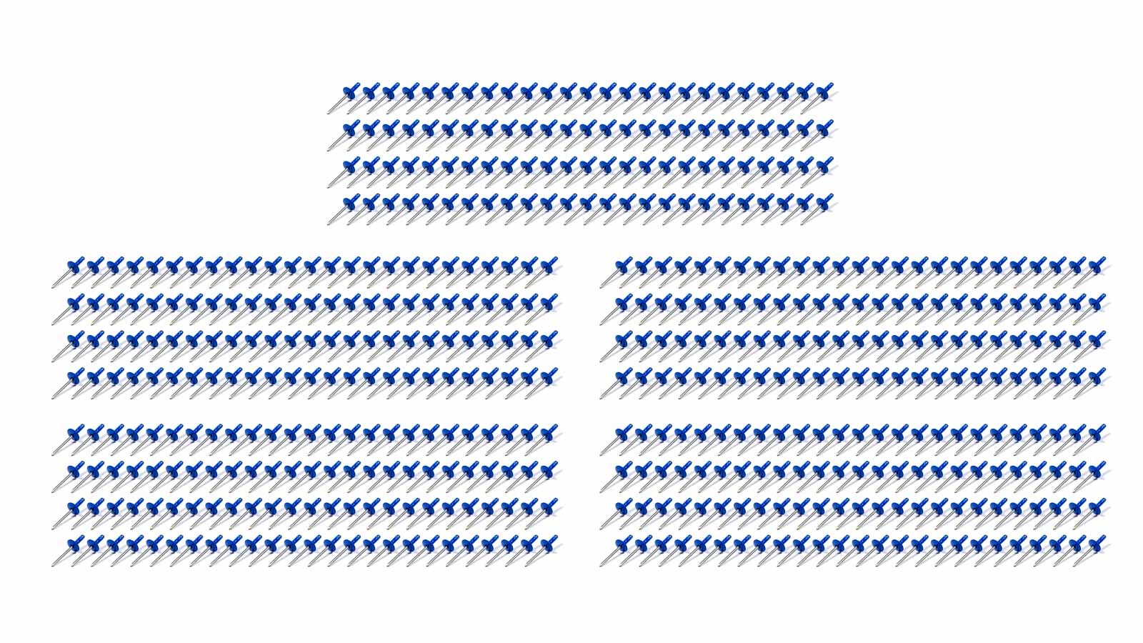 Product Description Rivet - Avex Style - 5/8 in Head - 3/16 in Steel Mandrel - 1/2 in Grip Range - Aluminum - Chevron Blue Powder Coat - Set of 500