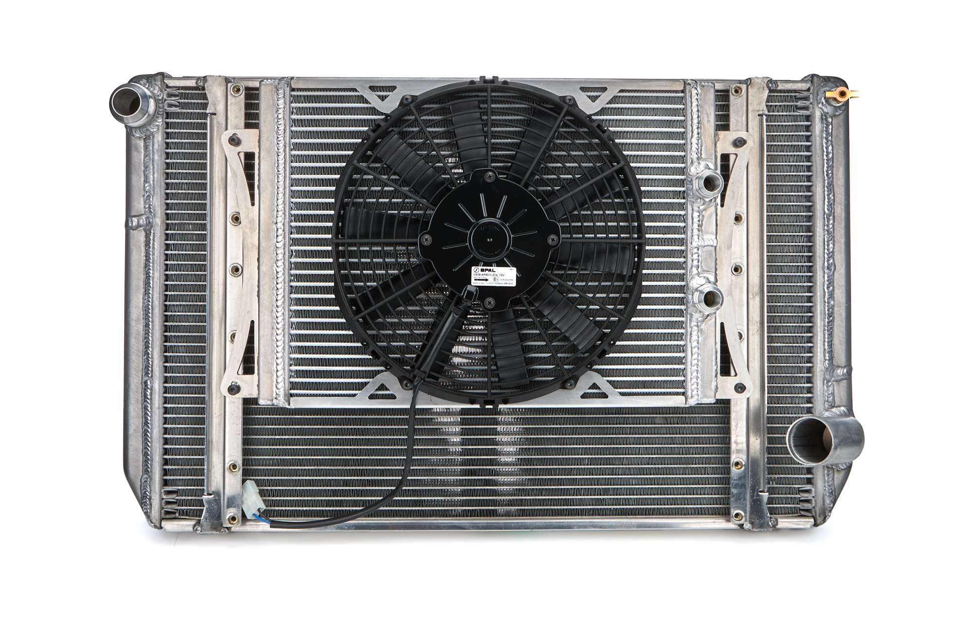 Product Description Radiator and Fan - 28.875 in W x 18 in H x 2 in D - Triple Pass - Passenger Side Inlet - Driver Side Outlet - Aluminum - Natural - Chevy - Super Late Model - Kit