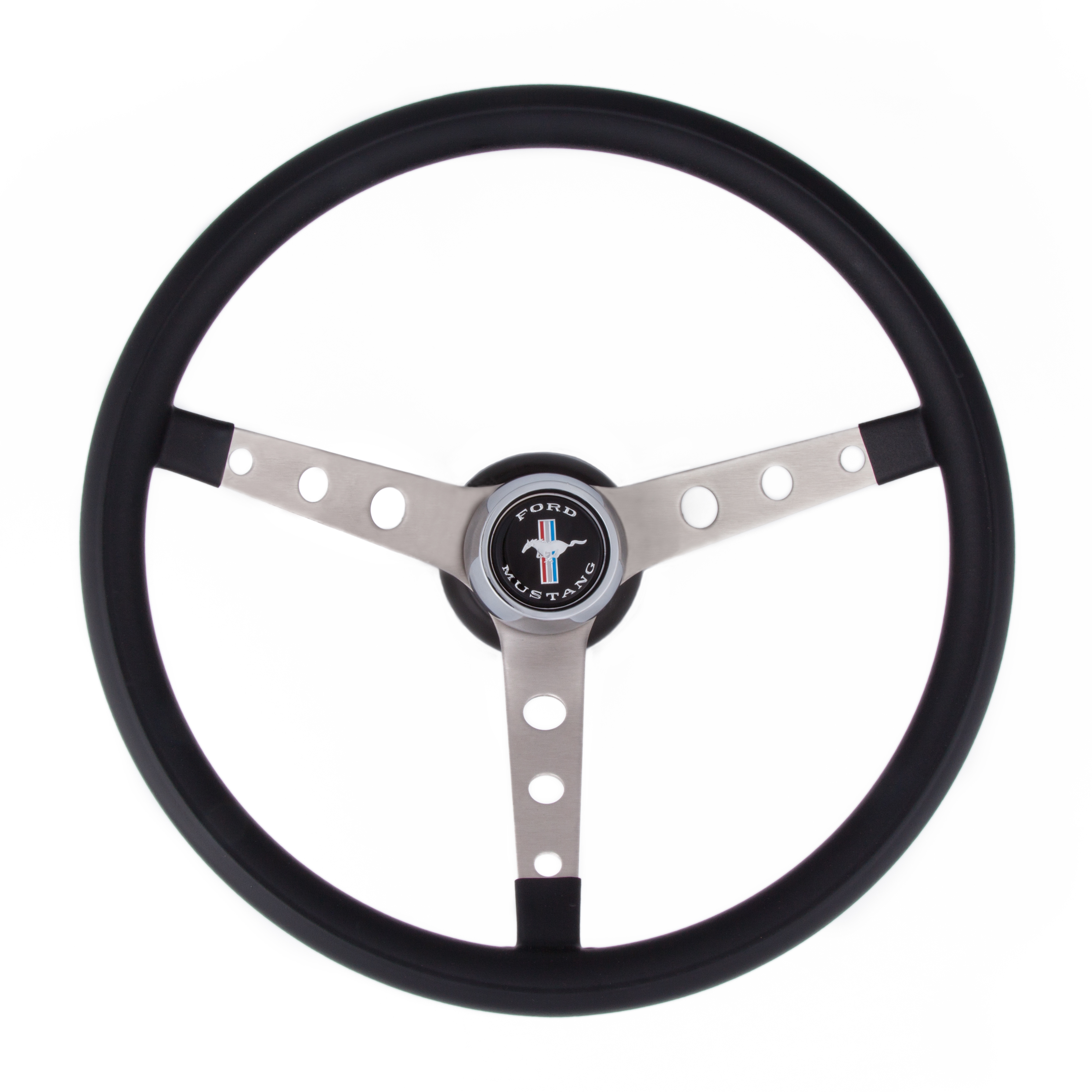 Product Description Steering Wheel - Classic Nostalgia - 15 in Diameter - 4.125 in Dish - 3-Spoke - Black Foam Grip - Stainless - Brushed - Each