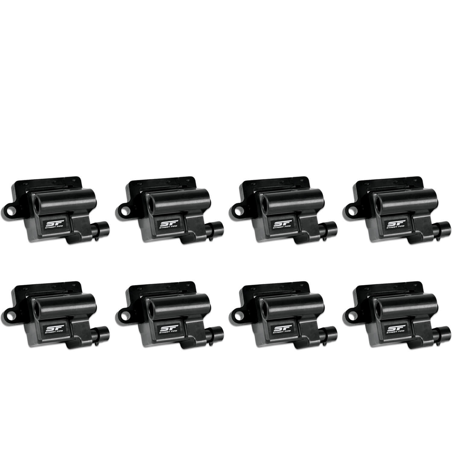 Product Description Ignition Coil Pack - Street Fire - Female Socket - 48000V - Square - Black - GM LS-Series - Set of 8