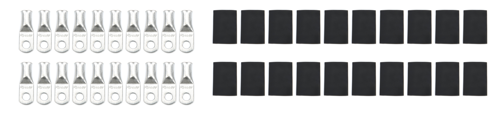 Product Description Battery Terminal - 4 Gauge - 1/4 in Eyelet - Heat Shrink Included - Copper - Tin Plated - Set of 20