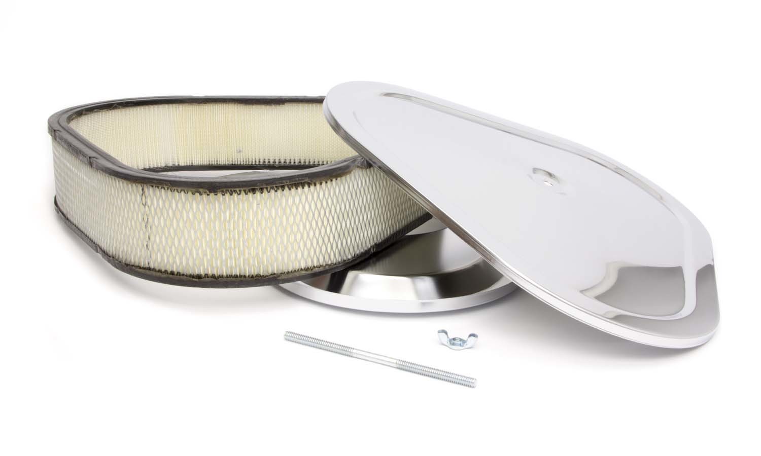 Product Description Air Cleaner Assembly - 14 in Triangle - 3 in Element - 5-1/8 in Carb Flange - Flat Base - Steel - Chrome - Kit