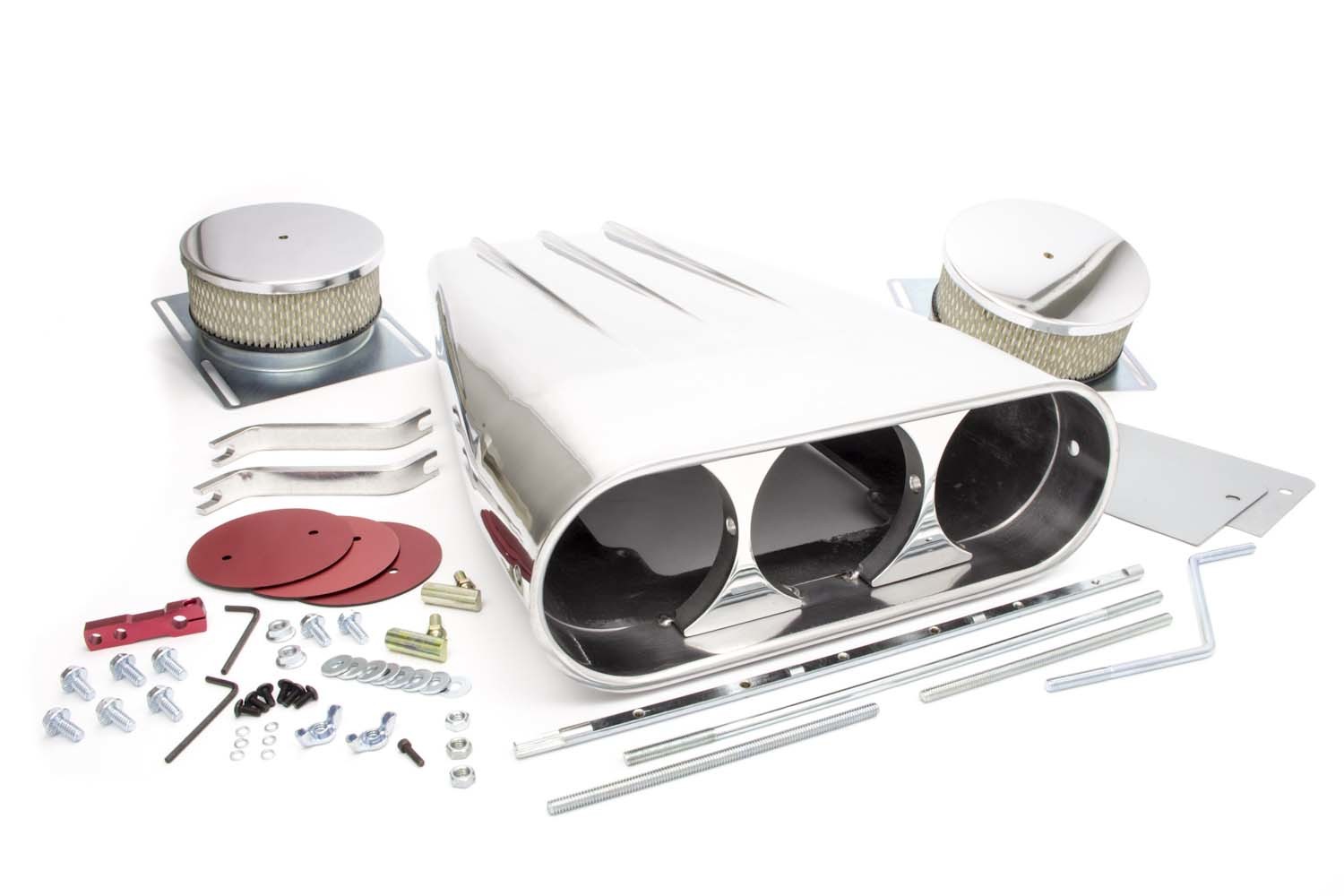 Product Description Air Cleaner Assembly - Street Scoop - 20 in Length - Dual and Single 5-1/8 in Carb Flange - Aluminum - Polished - Kit
