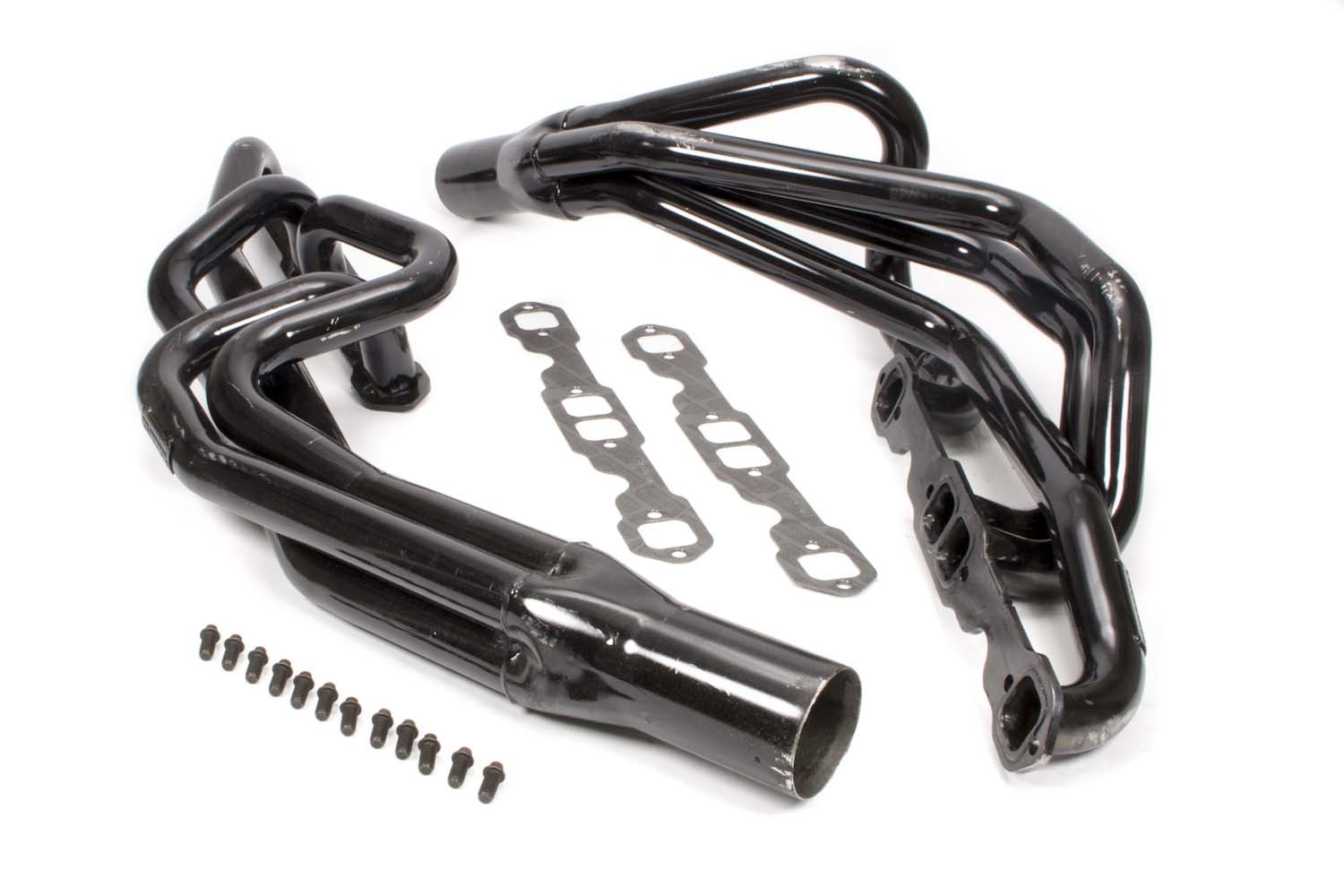 Product Description Headers - Conventional Crossover - 1.75 in Primary - 3.5 in Collector - Gaskets / Hardware Included - Steel - Black Paint - Small Block Chevy - Pair