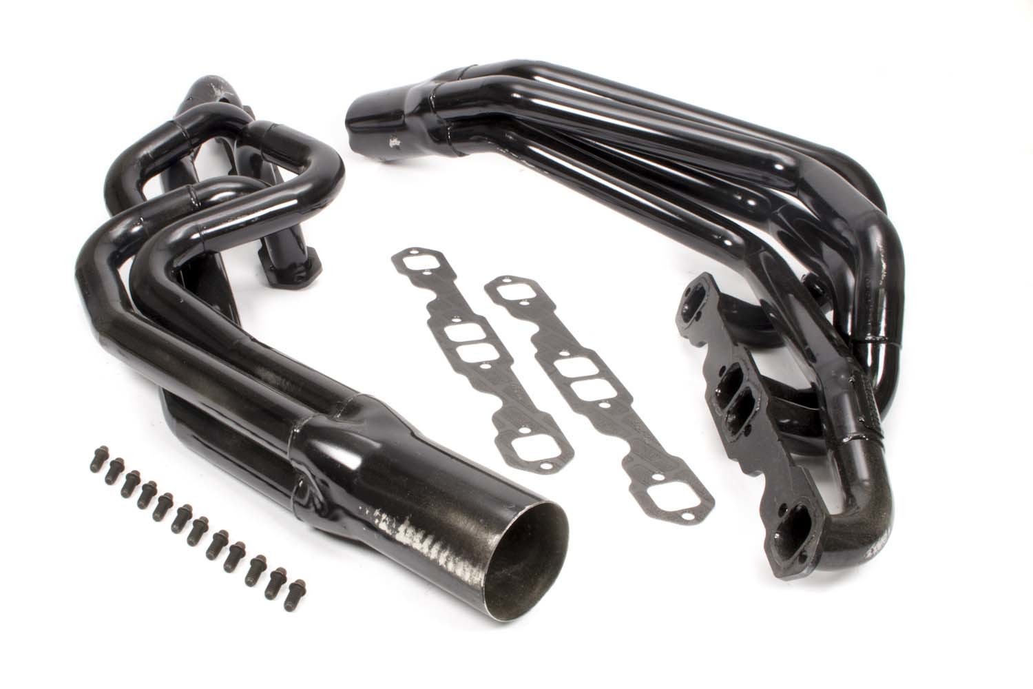 Product Description Headers - Conventional Crossover - 1.625 to 1.75 in Primary - 3.5 in Collector - Gaskets / Hardware Included - Steel - Black Paint - Small Block Chevy - Pair
