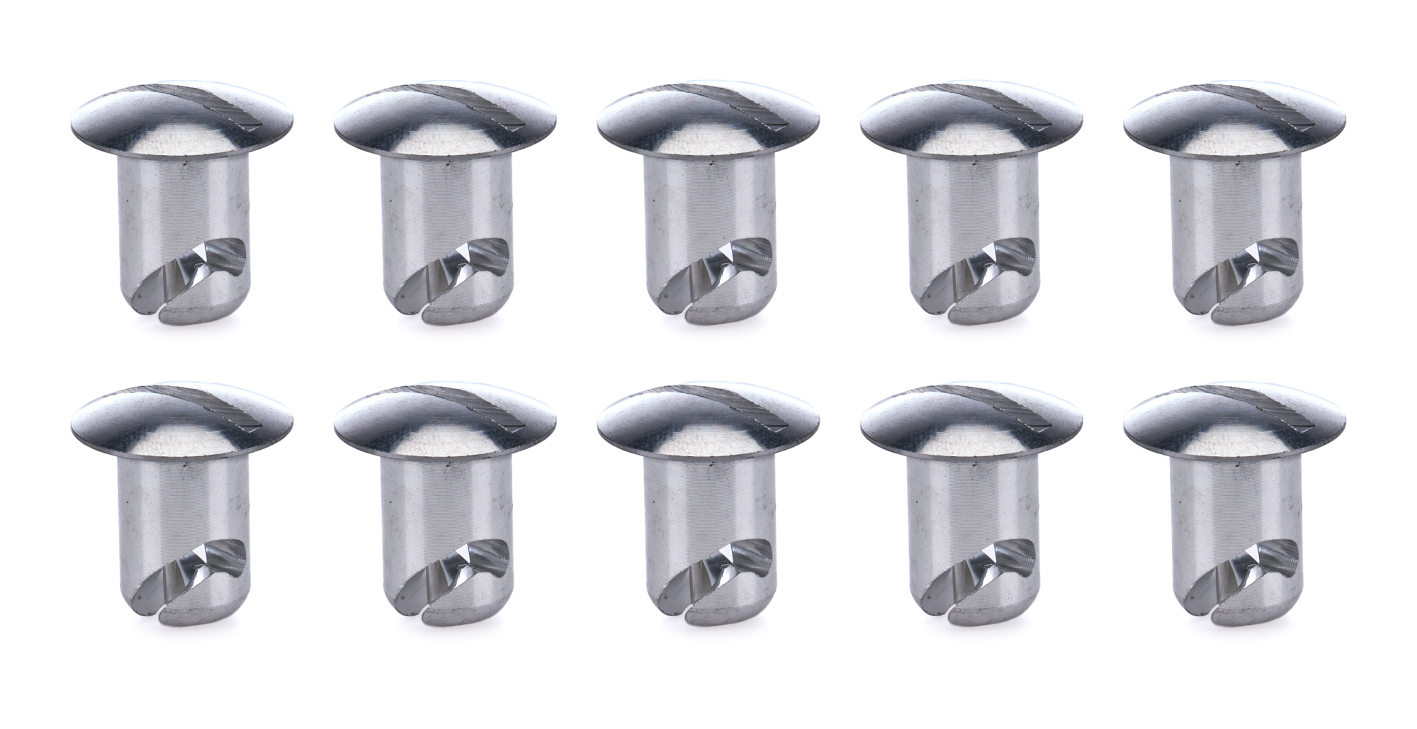 Product Description Quick Turn Fastener - Oval Head - Slotted - 7/16 x 0.450 in Body - Aluminum - Natural - Set of 10