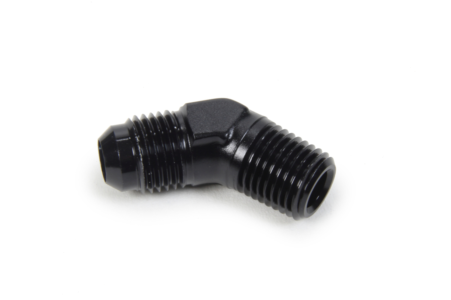 Product Description Fitting - Adapter - 45 Degree - 6 AN Male to 1/4 in NPT Male - Aluminum - Black Anodized - Each