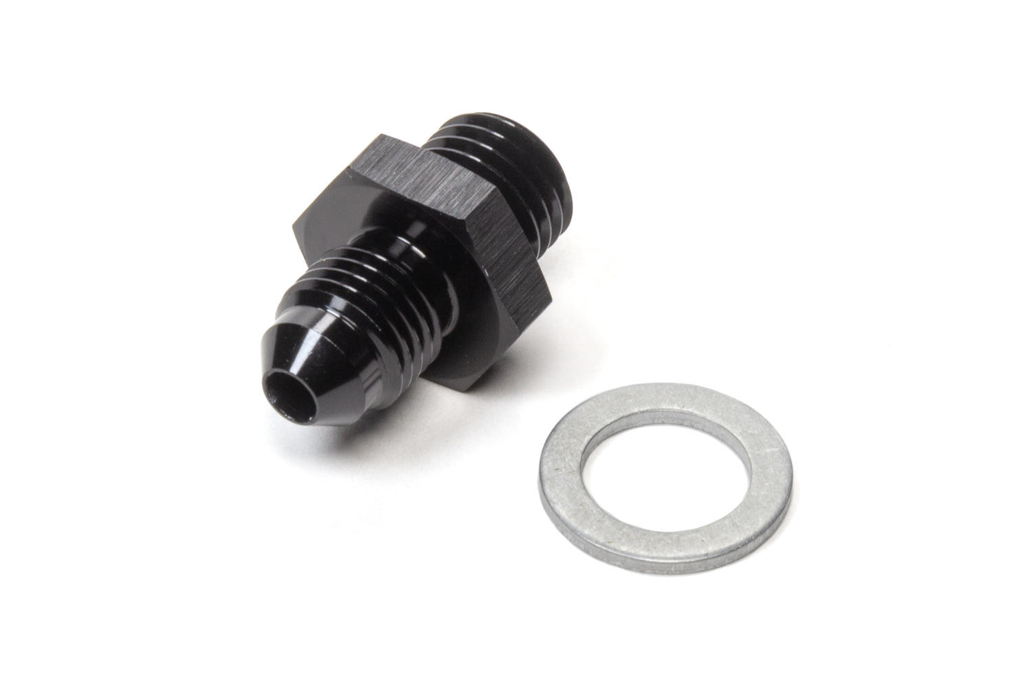 Product Description Fitting - Adapter - Straight - 4 AN Male to 12 mm x 1.50 Male - Aluminum - Black Anodized - Each