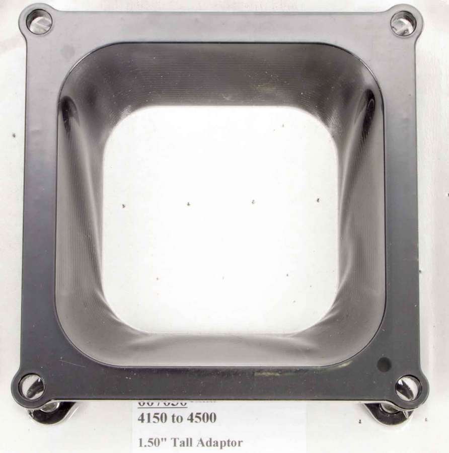 Product Description Carburetor Adapter - 1.5 in Thick - Open - Dominator to Square Bore - Aluminum - Black Anodized - Each